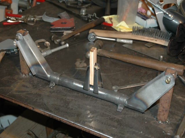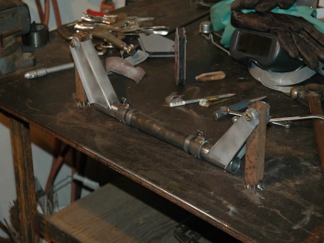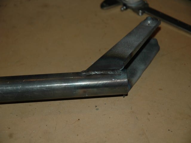 Another view. Both completed standoffs. I am going to make a jig to hold the standoffs in place on the 1-1/8" tube. I will scribe and grind the radius where it gets welded at that time.