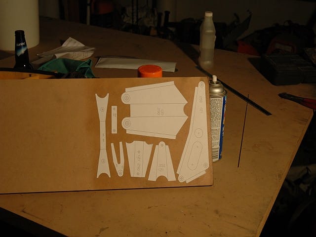 I drew the pieces for the controls full size in auto cadd, glued the templates to 1/2" MDF, and cutout on the bandsaw. I started with the control stick standoffs and cut the sheet steel close with a plasma cutter and then clamped to the grinding template