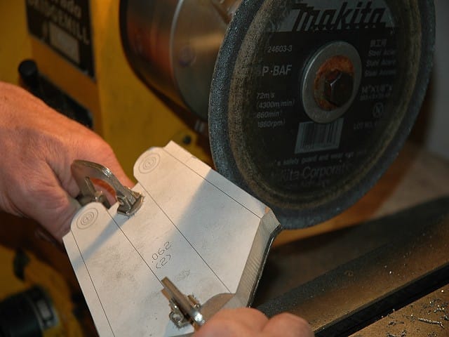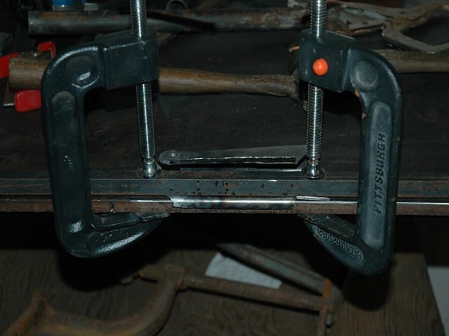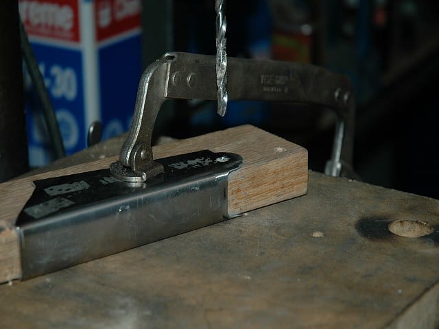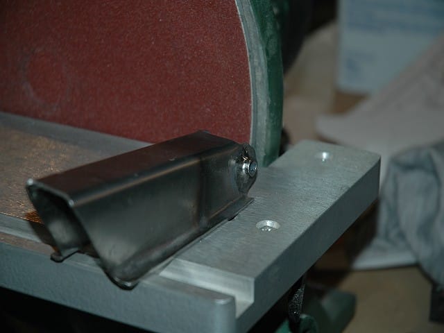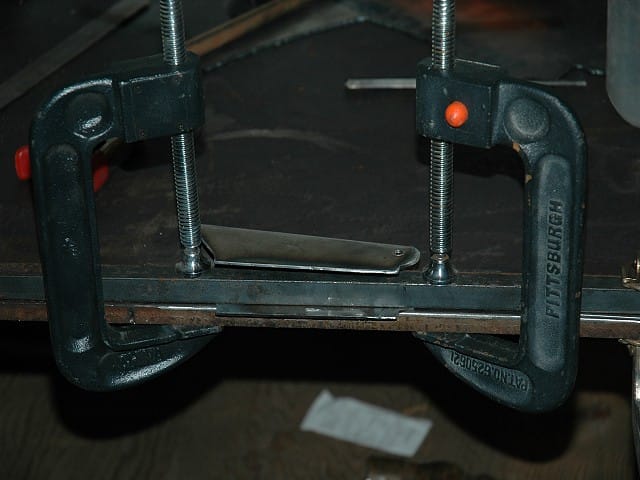To bend the stiffener flanges, I ground a radius on my welding table and clamped the standoff to the table. The flange bent fairly easily with a 2lb ballpeen hammer