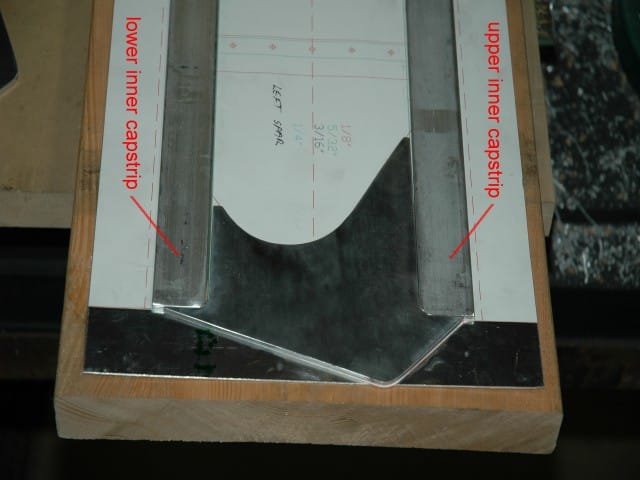 While reading some of the Bearhawk group posts, and talking with a couple of other builders, I noticed there seems to be a lot of confusion about how the spar and capstrips are layed out. It was very confusing for me as well, and took considerable time studying the plans before it finally dawned on me how it all fits. Seems simple now. I'm just starting to drill the second main spar and thought I would take some pictures and hope this will make it a little easier to understand.