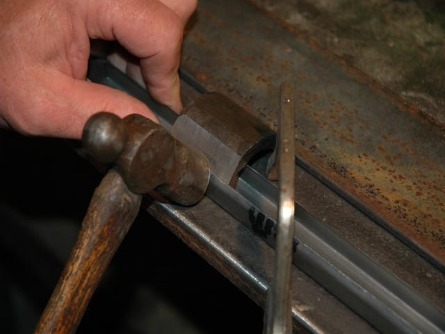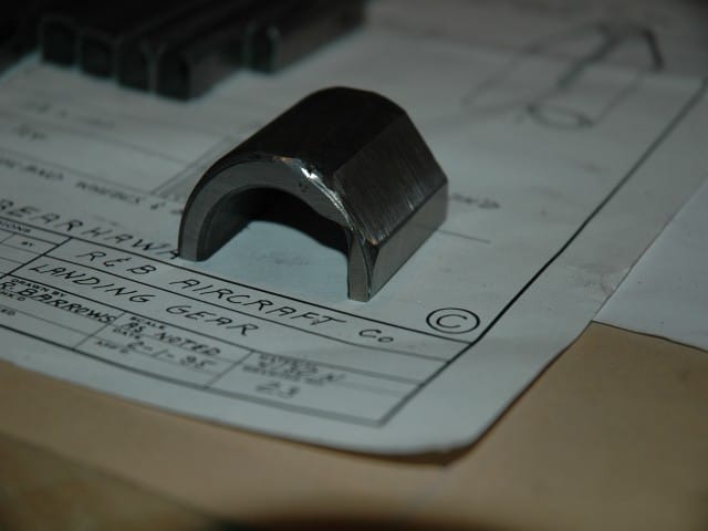 To make the 1/8" bends, a bending anvil was required. I used a piece of caterpillar track bushing I had laying around and cut it in half. I then disc sanded flats on the outside, and ground a clearance groove on the inside. This worked very well, and would have been even better if it would have been longer, say 4-6". But it was what I had laying around.