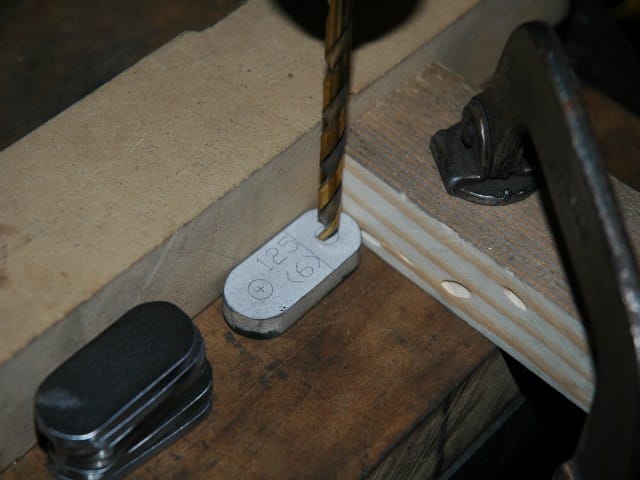 Tail Wire Tabs I set up stops on the drill press and drilled all the holes just by flipping the tab around.